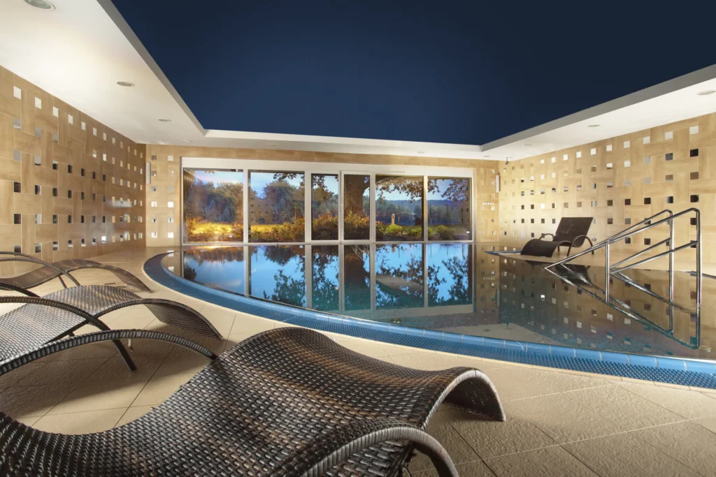 - The Organic & Garden Spa encompasses a variety of wellness features—sauna, Sanarium, Kneipp path, heated pool—and medical wellness services.